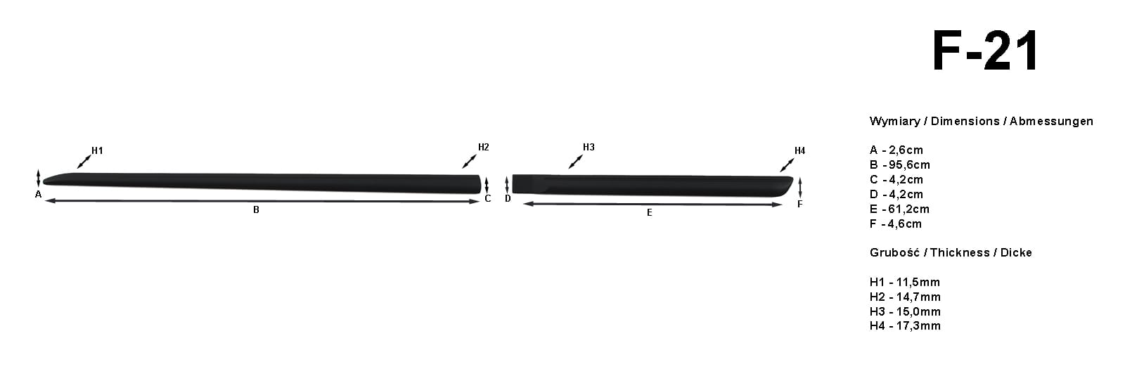 Bočne letvice F-21 (Mitsubishi ASX 2010-2012) so izdelane iz kvalitetne in lahke PU (polyurethane) plastike, različnih oblik, prilagojene modelu vozila.