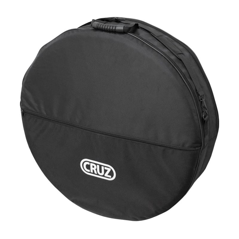 Torba za prevoz dveh koles. Torbe za kolesa CRUZ ščitijo kolesa med transportom in jih izolirajo od okolja. Torba na dveh kolesih CRUZ ima 2 predala z zadrgo za ločen prevoz dveh koles – 1 kolo na predal. Združljivo s kolesi do 29” in pnevmatikami do 4”. Torba za kolesa ima en priročen zunanji žep. Ima udoben ročaj za prenašanje in en pas za nošenje na rami. Torba za dve kolesi CRUZ ima oblazinjeno notranjost in ščitnike za kolesne osi. Vreča za kolo je zaščitena po celotnem premeru vreče.