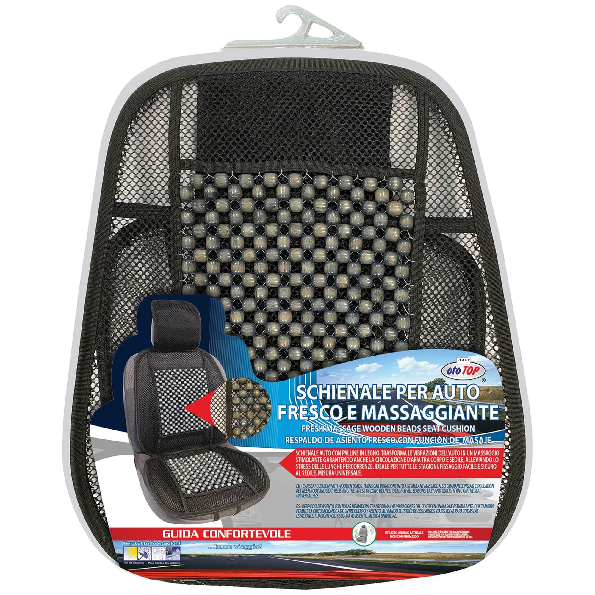 DAC ČRNA MASAŽNA PODLOGA ZA SEDEŽ. Z lesenimi kroglicami in obodnim kovinskim okvirjem spremeni vibracije avtomobila v sproščujočo masažo, ki prav tako zagotavlja kroženje zraka med sedežem in telesom, kar razbremeni stres na dolgih poteh.