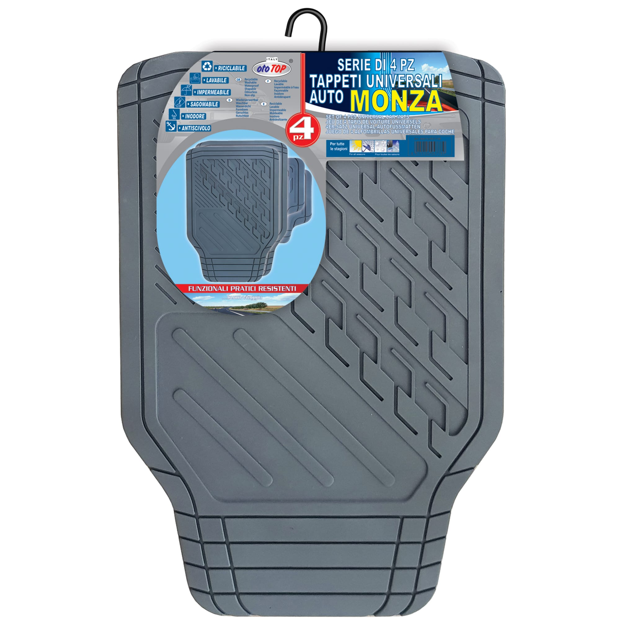 MONZA 4 delni set avto tepihov iz mehkega PVC-ja brez vonja. Univerzalni. Prilagodljiv skozi linije reza. Globok perimetralni rob za boljše zadrževanje tekočine in umazanije.