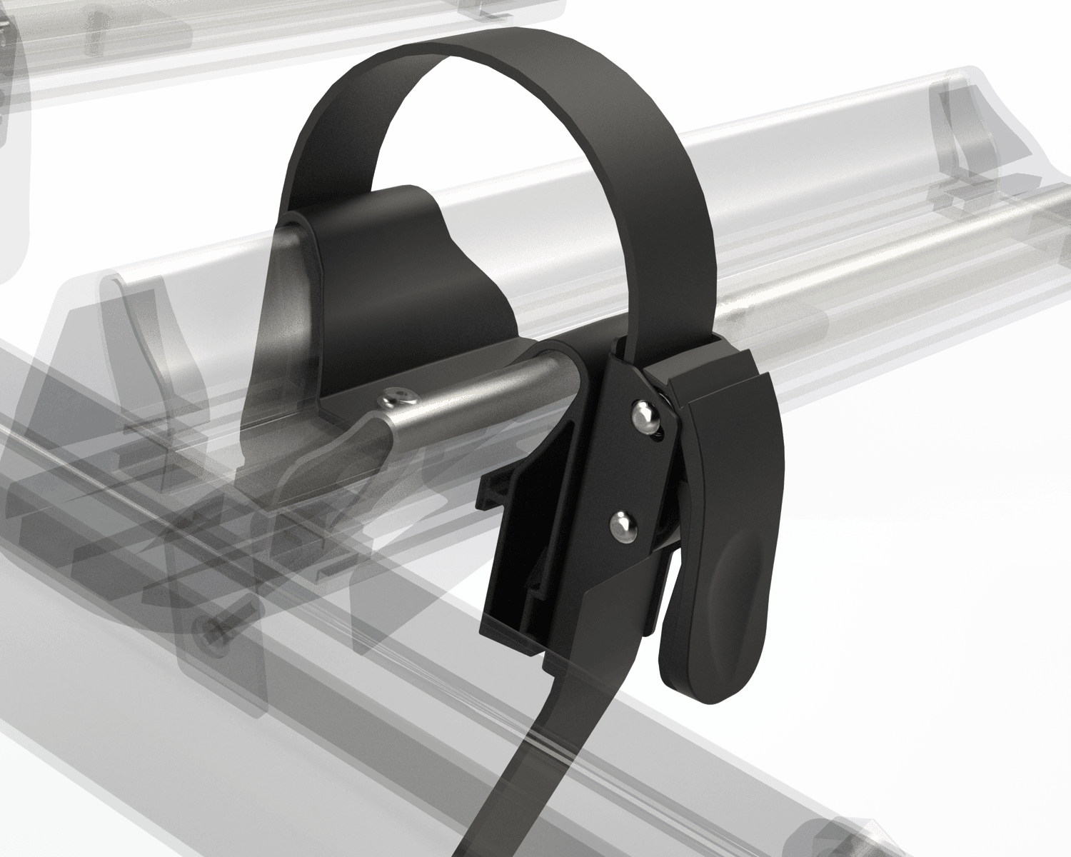 Enostavna montaža koles – odstranljivi držali okvirja in dolgi plastični trakovi z zaponko Double Way za pritrditev platišč.