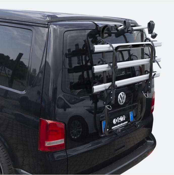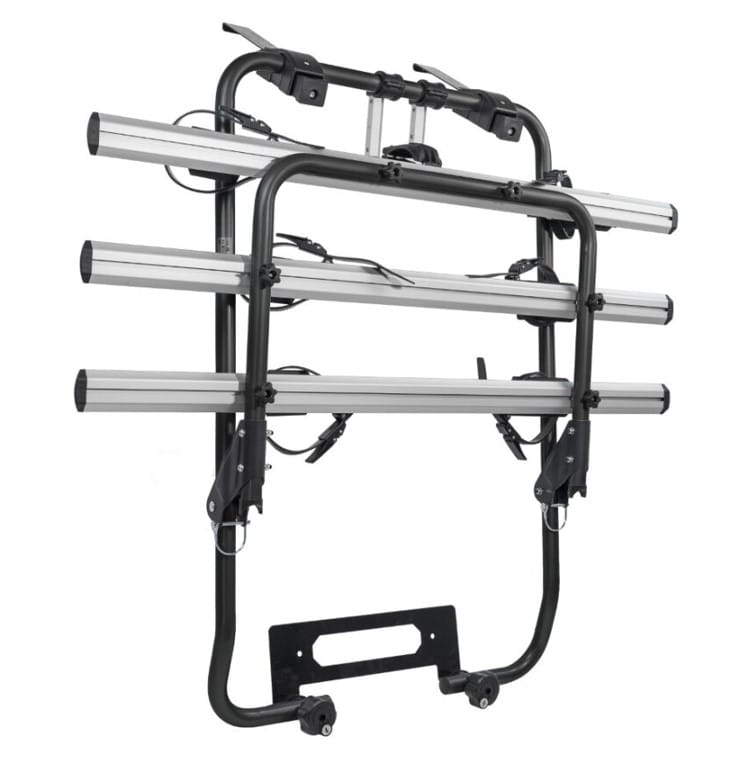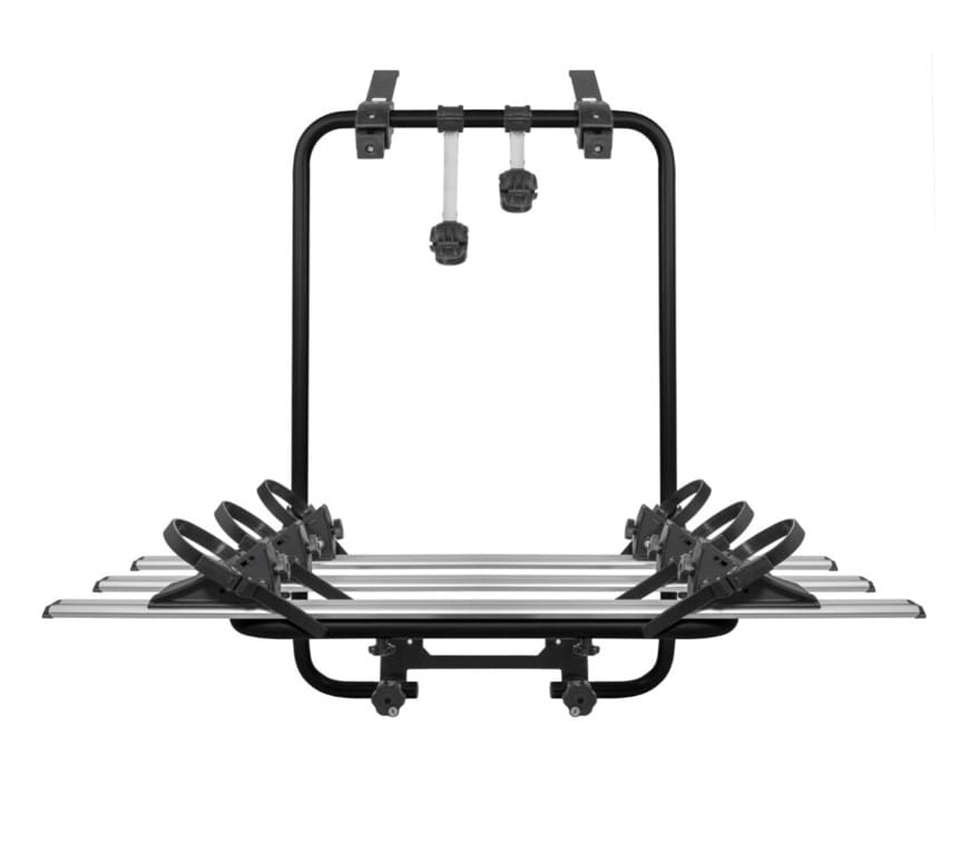 Zasnovan za: 3 klasična kolesa z največjo nosilnostjo 45 kg ali 2 e-kolesa z max. težo kolesa 22kg. Ključavnica proti kraji: vključena. Garancija: 2 leti