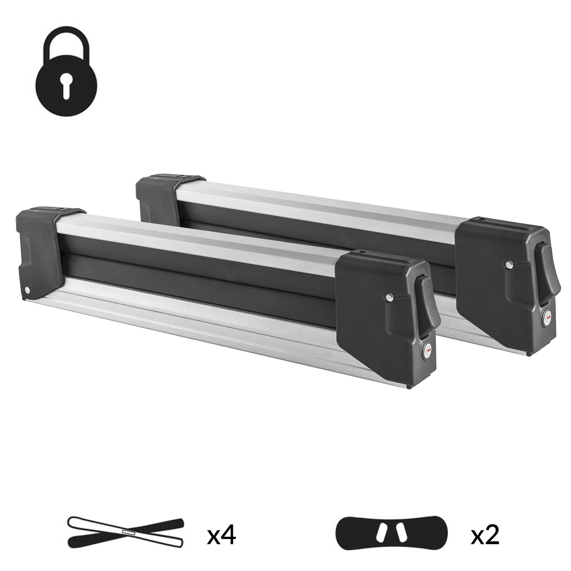 - Izboljšan oprijem: Gumirani deli nosilca so višje trdote, kar omogoča učinkovit oprijem smuči in deskarskih pripomočkov, da ostanejo na svojem mestu med vožnjo.